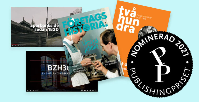 We have four nominations in the Publishing Prize 2021! The magazines "Företagshistoria" and "TWOHUNDRED - Money and life since 1820" as well as the films "BZH360 - A Småland history" and "The Savings Bank Idea - Since 1820" have nominations. The winners will be announced on 17 November 2021.