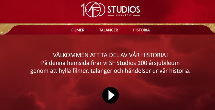 Sweden’s largest and most well-known film company, SF Studios, celebrates 100 years. The company’s history is impressive: more than 1,000 film productions, numerous Oscars and not the least some of the most well-known titles in film history. Thy Soul Shall Bear Witness, The Seventh Seal, the Emigrant-series and My Life As A Dog all came from SF Studios. This is also were Ingmar Bergman directed his first movies. When Bo Widerberg in the mid-1970s made The Man On the Roof an international success, he laid the foundation for today’s Scani Noir crime thrillers. And seven out of the ten Swedish movies that historically have drawn the largest cinema crowds in Sweden come from SF Studios.