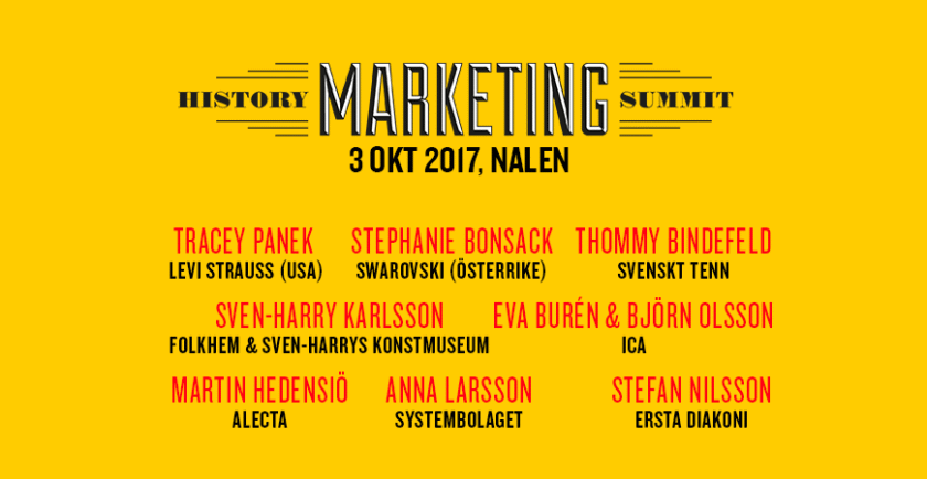 Årets History Marketing Summit har just ägt rum. Vi filmade alla presentationerna från svenska och utländska företag som använder sin egen historia för marknadsföring, organisationsbyggande och produktutveckling. Filmerna kommer snart upp här. Till dess kan du se vilka som talade nedan.