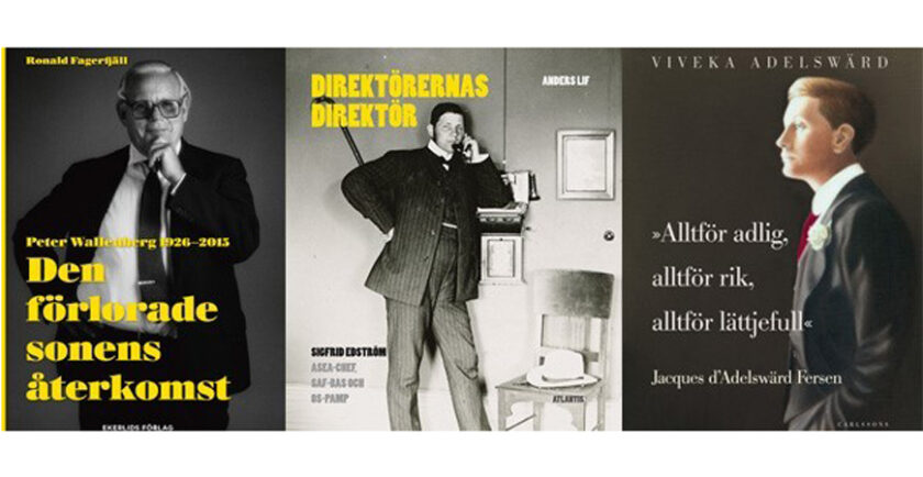 Vi möter Ronald Fagerfjäll som är aktuell med boken Den förlorade sonens återkomst, om finansmannen Peter Wallenbergs liv. Anders Lif berättar om arbetet med boken Direktörernas direktör, som handlar om Asea-chefen Sigfrid Edström. Vi får också besök av Viveka Adelswärdsom pratar om sin bok Alltför adlig, alltför rik, alltför lättjefull, som handlar om hennes släkting Jacques d'Adelswärd Fersen.