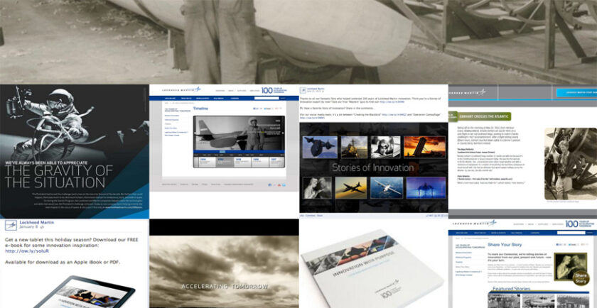 Med historiens hjälp skapade de en "greatest moments"-sida där 100 händelser lyftes fram.Till sin hjälp hade de det amerikanska företaget History Factory som använder företagshistoria för att skapa berättelser som inspirerar och motiverar människor. Berättelsen byggdes utifrån företagets människor, deras mål och sätt att tänka. Och hur de var banbrytande innovatörer. Detta ledde till att Lockheed Martins hemsida byggdes om och de hundra utvalda historierna visades upp i form av dokumentärvideor och historiska fotografier. Dessa bilder användes även i en marknadsföringskampanj i tidningar och reklamblad.